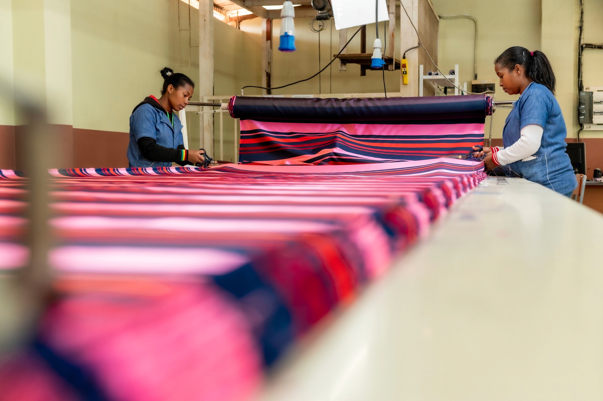 Forts d'un outil industriel éprouvé, d'ateliers de valeurs ajoutées créatifs, d'une équipe de collaborateurs expérimentée et performante, nous maîtrisons l'ensemble du process de fabrication depuis le sourcing matières à l'expédition du produit fini en passant par le développement, la coupe, la confection , la finition.