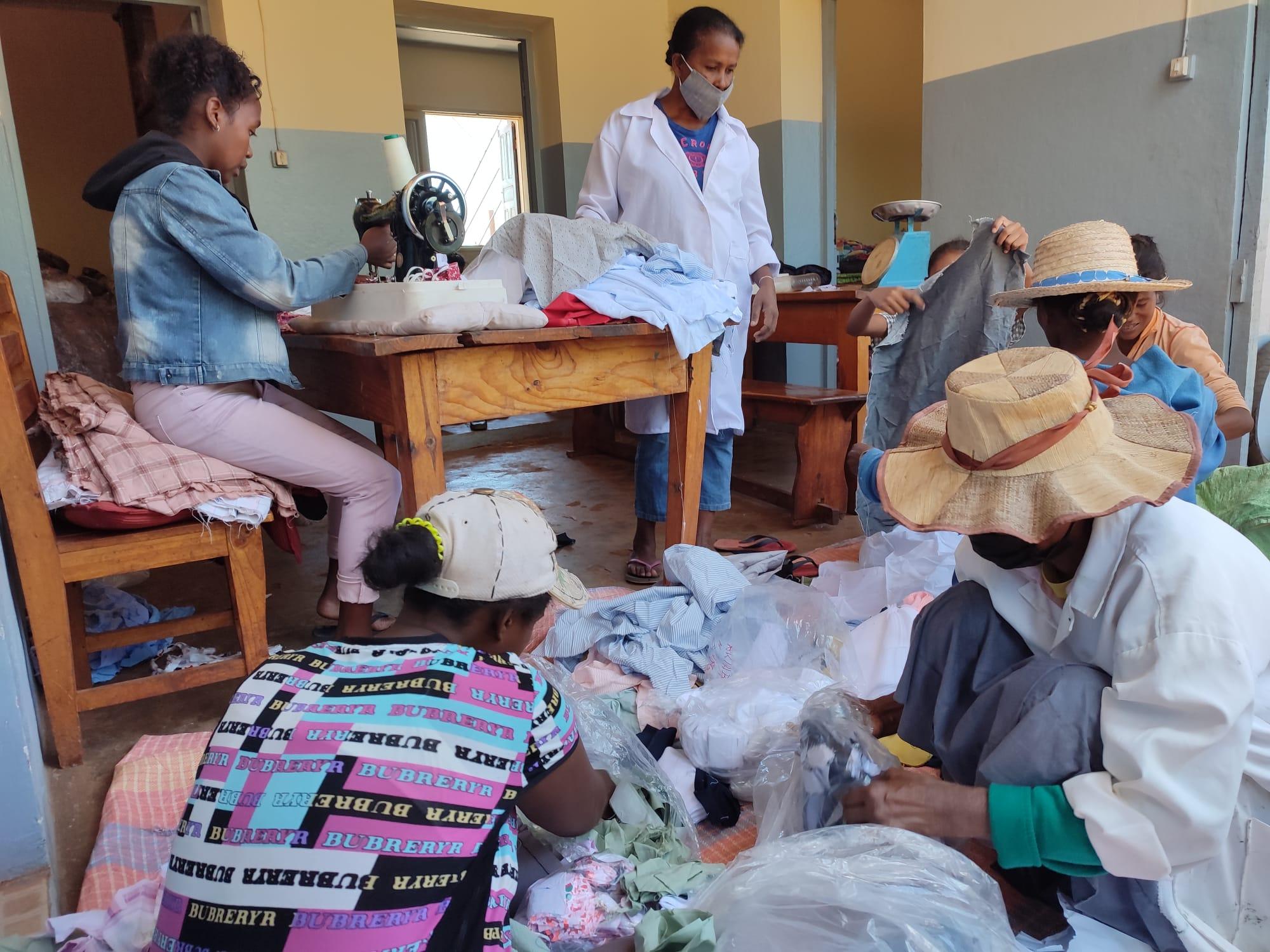 Le reste des chutes est régulièrement distribué à nos associations partenaires qui les utilisent dans leurs ateliers de couture pour fabriquer des produits utiles aux besoins des familles démunies du quartier (couvertures, matelas, coussins, vêtements).